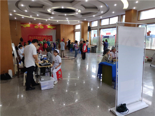 6月17日湖北木蘭花社會工作服務(wù)中心工作人員早早的就來到了磨山社區(qū)準(zhǔn)備今天上午的便民活動。在磨山社區(qū)的工作人員與木蘭花社工雙方的合作下,材料之前就已準(zhǔn)備齊全,并迅速的布置好了活動場地,靜候居民的到來。