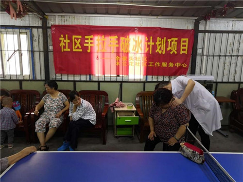 6月18日上午9點(diǎn),余家頭社區(qū)舉辦的第五場(chǎng)免費(fèi)頸肩按摩的公益活動(dòng)開始了。