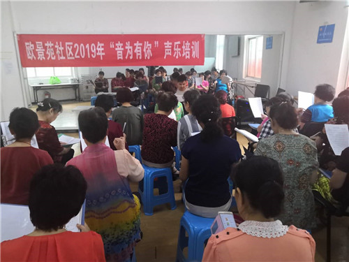 6月19日上午9點,歐景苑社區(qū)開辦的“音為有你”聲樂培訓(xùn)班第五堂課開課啦!近30余位聲樂愛好者參與了此次課程。