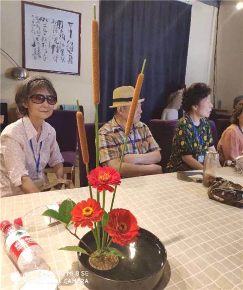 瞧,不大一會(huì)兒,居民們就采摘了一大抱色彩艷麗、形態(tài)各異的月季、野菊花……陣陣花香撲鼻而來,各式新鮮花材整齊地?cái)[放在桌面上,專業(yè)插花靜靜老師耐心地為大家講解日式小原流插花技巧,大家興致盎然地練習(xí)插花技修剪花枝、整理花朵、討論插花位置,探討插花要領(lǐng)和技藝。