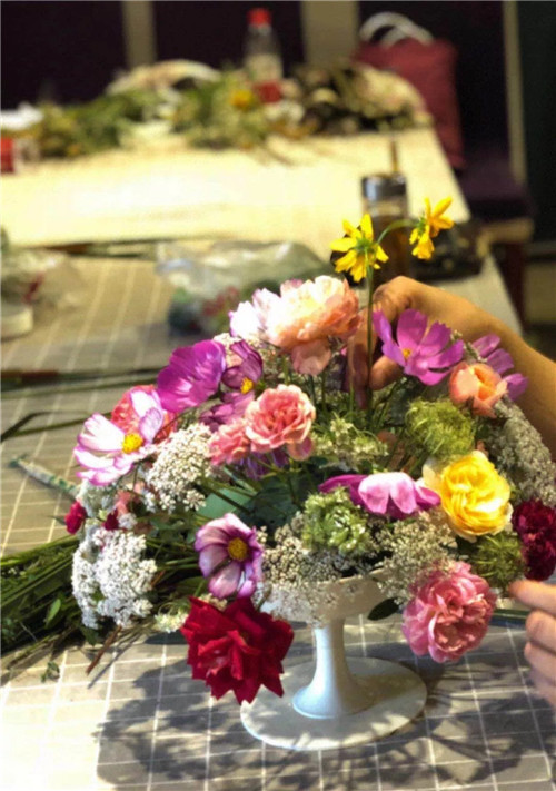 最后,靜靜老師還用多余的花材給大家示范了西洋插花,美麗的花兒贏得贊嘆聲大家紛紛舉起相機(jī)……