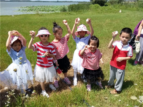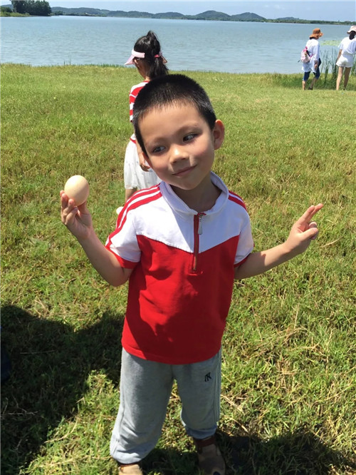 這一大片青草地就是找野雞蛋的活動(dòng)場地,大朵大朵的野胡蘿卜花像是微微含笑的調(diào)皮的臉,”雞蛋在哪里呢?老師剛介紹完規(guī)則,就有眼尖的小朋友在隱蔽的草叢中發(fā)現(xiàn)第一枚雞蛋,緊接著第二枚,再是第三枚……小朋友攥得緊緊的,愛不釋手,生怕一不留神就弄“丟”了??粗种械摹皠趧?dòng)成果”,一張張小臉頓時(shí)笑成一朵花。
