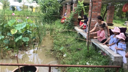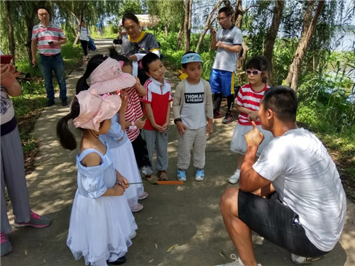 生態(tài)自然教育就是讓孩子在大自然中撒野!稍事休息,大熊老師的帶領(lǐng)大家進(jìn)行上午的主題活動(dòng)-找雞蛋、掰玉米比賽。過小橋,走過一段開滿鮮花的鄉(xiāng)間小道,眼前出現(xiàn)一大片開闊地,清澈的湖水,荷花盛開,一只小野鴨驚慌地游走,”看,還有?!埃∨笥洋@呼起來,惹得大人也紛紛過來和牛大哥合影。