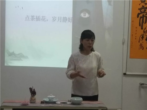 甄老師從中國茶文化歷史淵源講起,引申出“泡茶品茶,就是教你怎樣生活”的道理。她說,現(xiàn)代生活節(jié)奏加快,伴隨而來很多健康與精神上的不適,其實慢、閑才是生活的真諦。