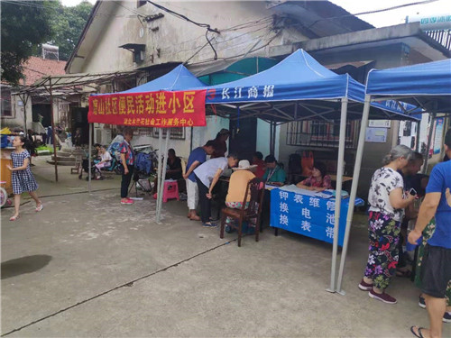7月9日湖北木蘭花社會工作服務(wù)中心工作人員早早的就來到了磨山社區(qū)準(zhǔn)備今天上午的便民活動。磨山社區(qū)的工作人員與木蘭花社工,魯紅團(tuán)隊的志愿者們一起布置場地,擺放桌椅,掛上橫幅,搭建雨棚靜候居民的到來。
