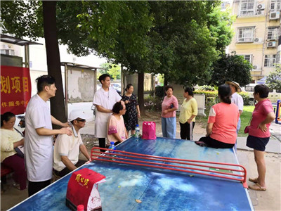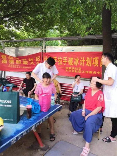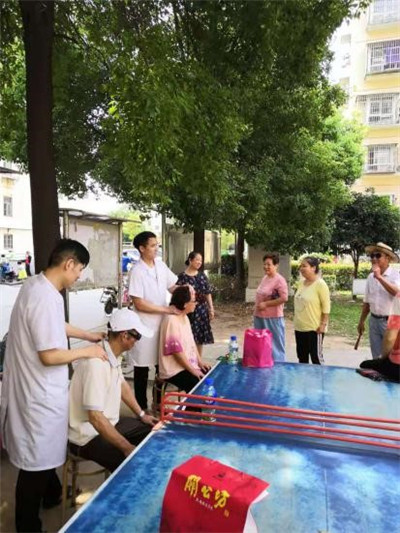 7月16日上午9點(diǎn),余家頭社區(qū)舉辦免費(fèi)頸肩按摩的公益活動(dòng)開始了。