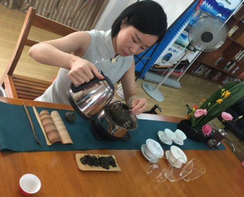這次張老師為了讓大家更深刻的理解三種茶的不同,特地帶了2種器具對不同的茶葉進行沖泡。白毫銀針和新白茶可以用蓋碗、陶壺或者進行煮茶,而老白茶用紫砂壺進行沖泡或煮茶效果會更好。“一年茶、三年藥、七年寶”,這話說的就是老白茶,白茶的制作工藝是最自然原始的,不經殺青或揉捻,只經過曬干,或置于通風透光效果好的室內,讓其自然萎凋。晾曬至七八成干時,再用文火慢慢烘干即可。保留了豐富的活性酶和多酚類物質,它除有其它茶葉固有的營養(yǎng)成份外,還含有人體所必需的活性酶,老白茶指的是經過多年合理保存的茶葉,年份越長,茶葉的品飲和營養(yǎng)價值、藥用價值也就越高。