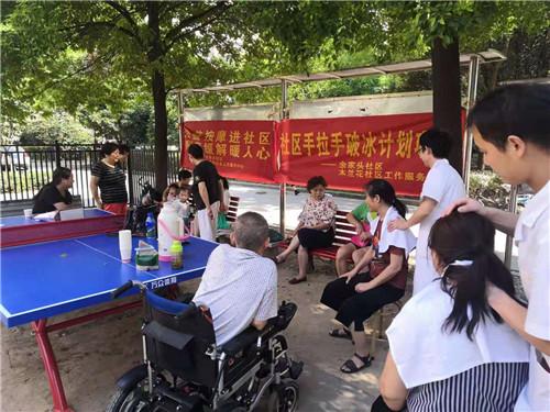 9月3日上午8點(diǎn),余家頭社區(qū)舉辦免費(fèi)頸肩按摩的公益活動(dòng)開始了。