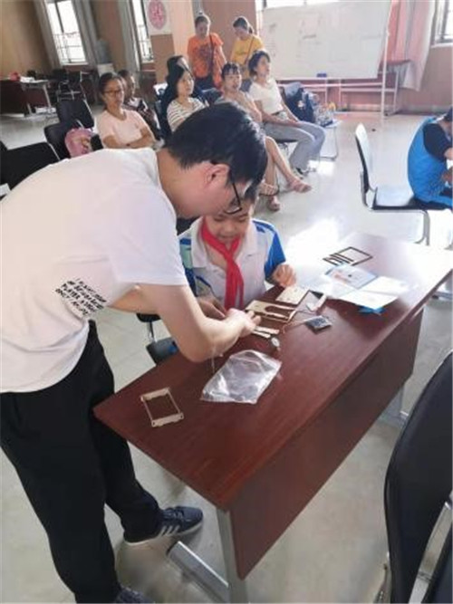首先,孩子們在家長的帶領(lǐng)下在居委會活動室集合。在活動開始前,為了活躍氣氛,木蘭花的社工馮金運與孩子們玩起了一個個小游戲,惹得孩子哈哈大笑。此次活由機器人制作的湯老師帶領(lǐng)孩子們制作太陽能風(fēng)扇?;顒娱_始后,湯老師先給孩子們看了一個與太陽能風(fēng)扇有關(guān)的短片,讓孩子們了解一下什么是太陽能風(fēng)扇,接著,孩子們開始根據(jù)湯老師的演示與指導(dǎo)拼裝太陽能風(fēng)扇,雖然制作它不容易,但是孩子們還是完成的自己的作品。