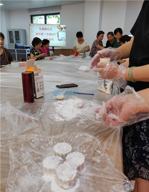 為響應(yīng)國家傳統(tǒng)節(jié)日的號召,9月9日下午3點(diǎn),北環(huán)路社區(qū)居委會2樓開展手工做月餅的活動。