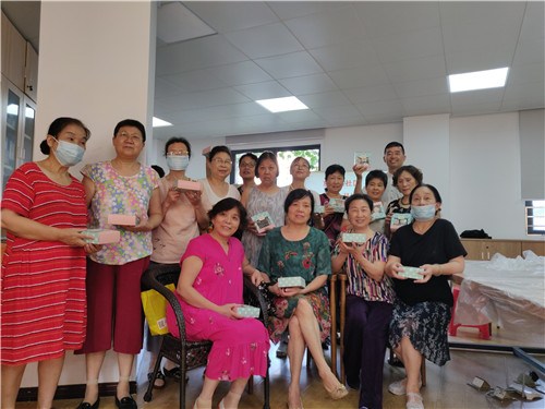 活動開始后,在社工的引導(dǎo)下,老師給居民們開始發(fā)放手套,口罩,模具以及月餅原材料。材料全部發(fā)放到位,居民們開始認(rèn)真地聽老師的細(xì)心講解,首先把月餅黑色的和白色的原材料分別分成四份,每一份都像包餃子一樣,把黑色豆沙包進(jìn)原材料中,然后開始撒上一點(diǎn)面粉,最后就要用到模具了,把每一個面團(tuán)壓上精美的圓形圖案,一個個精美的月餅就大功告成啦!