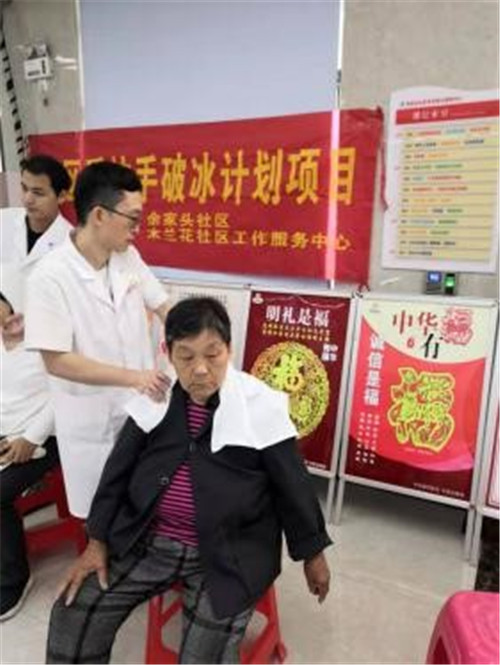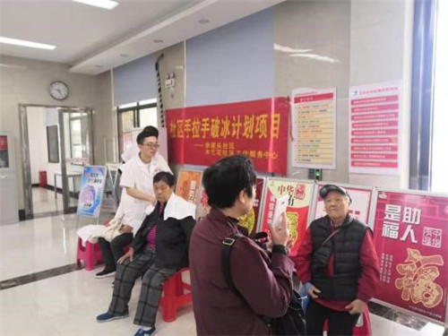 10月15日上午8點(diǎn)30,余家頭社區(qū)舉辦免費(fèi)頸肩按摩的公益活動開始了。