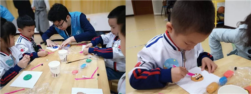 最后一個(gè)環(huán)節(jié)中,小朋友們開始自己制作面塑作品。在志愿者老師的幫助下,分別制作了屬于自己的“鎮(zhèn)墓獸”和“小雪人”。