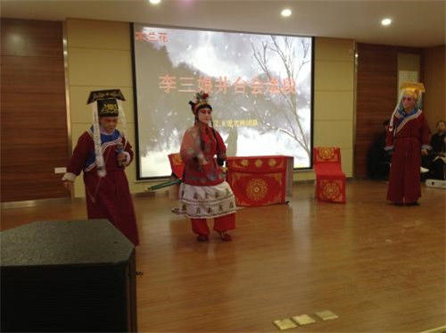 有獎(jiǎng)問(wèn)答結(jié)束后,演出也正式開始。在歷時(shí)兩個(gè)小時(shí)的演出過(guò)程之中,艾玉蓮老師的楚劇團(tuán)的演員們陸續(xù)登臺(tái),利用自己沉穩(wěn)的臺(tái)風(fēng)、精湛的唱腔為廣大前來(lái)觀看節(jié)目的社區(qū)居民連續(xù)奉獻(xiàn)了《李三娘井臺(tái)會(huì)選段》與《秦香蓮選段——闖宮》著名經(jīng)典曲目的精華選段。演員的傾情表演、觀眾的熱烈掌聲,將現(xiàn)場(chǎng)氣氛推向一個(gè)個(gè)高潮,為觀眾呈獻(xiàn)了一場(chǎng)精彩紛呈、回味無(wú)窮的藝術(shù)大餐,演員們?cè)鷮?shí)的演技搏得了現(xiàn)場(chǎng)陣陣掌聲,讓大家過(guò)足了癮。