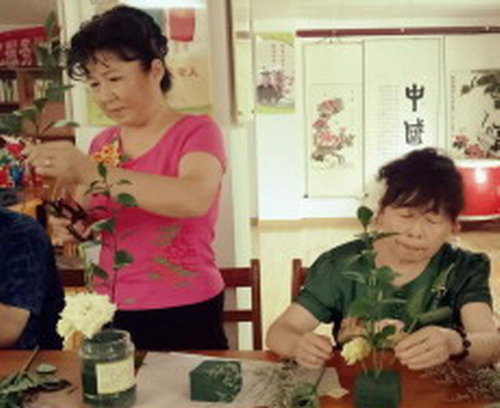 插花、掛畫、焚香、烹茶是我國的傳統(tǒng)四藝,透過嗅覺、味覺、觸覺與視覺品味日常生活,將日常生活提升至藝術(shù)境界,充實內(nèi)在涵養(yǎng)與修為。在今天,由徐東路社區(qū)引進(jìn)的居家養(yǎng)老社團(tuán)特色服務(wù)項目,湖北木蘭花社會工作服務(wù)中心承接并邀請張彩云老師講課的茶藝,給居民帶來了插花的知識。