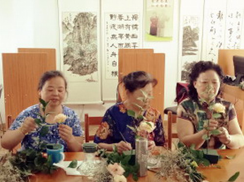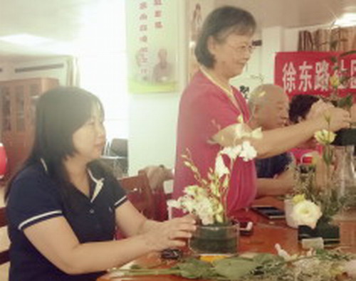 居民們隨著張老師的講解,一步一步完成了自己的插花,看著面前的作品,大家都覺得。不同的花材經(jīng)過插花技藝重新定格,雖只占用小小一方,卻能夠與整個空間相得益彰,更體現(xiàn)著主人的生活哲學(xué)。為家添一抹亮色,裝點(diǎn)自己的生活。
