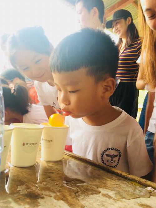 8點(diǎn)20分,天空飄著綿綿細(xì)雨,43名青少年與家長(zhǎng)一起從徐東路社區(qū)出發(fā),1個(gè)半小時(shí)的車程后帶領(lǐng)孩子們一起奔向大自然。讓孩子們體驗(yàn)大自然,讓您和孩子一起快樂(lè)地享受土地、親密接觸大自然的美意。以生命影響生命,讓心靈點(diǎn)亮心靈,以品格傳遞品格,以行動(dòng) 帶動(dòng)行動(dòng),愛(ài)是一次共同的成長(zhǎng)。到達(dá)目的地后,段老師為了讓大家放松身心,帶領(lǐng)全體一起進(jìn)行40分鐘的拓展,跟著節(jié)拍放松身體,大人和小朋友一起互動(dòng)吹乒乓球,相互合作,增加親子之間的關(guān)系。石超老師先給小朋友們講解國(guó)學(xué)的重要性,然后分析為什么學(xué)不好文言文、詩(shī)詞為什么背不了幾首、為什么寫(xiě)作文總寫(xiě)不出東西,讓小朋友們先了解古詩(shī)詞所表達(dá)的意思,使小朋友們記憶起來(lái)更容易。40分鐘的上課時(shí)間,讓大家都對(duì)詩(shī)詞有了不同的理解,有了詩(shī)詞的鋪墊,帶領(lǐng)小朋友到戶外認(rèn)知植物,用植物作畫(huà)就更加富有趣味性了。