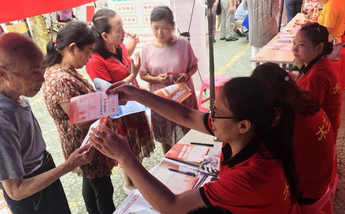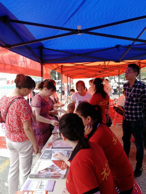 湖北木蘭花家政服務股份有限公司執(zhí)行總經(jīng)理李金保及員工在紅安招聘現(xiàn)場合影