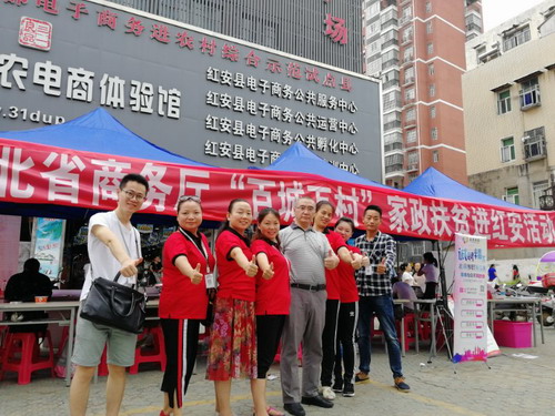 與商務廳、省家協(xié)、紅安縣領導在招聘現(xiàn)場合影