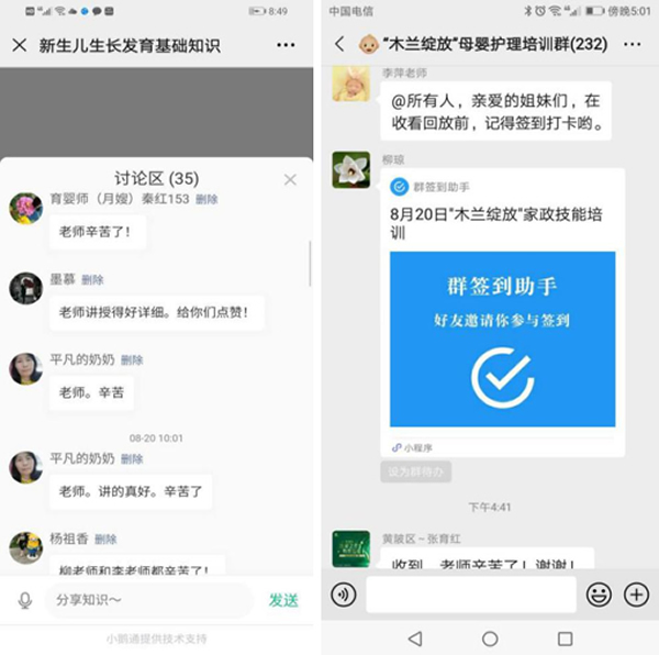 “木蘭綻放”家政技能培訓(xùn)直播課堂第三期于8月20日上午9:30分開課。本次直播的內(nèi)容是《新生兒生長(zhǎng)發(fā)育基礎(chǔ)知識(shí)》,此次課程木蘭花學(xué)校的兩位專職老師通過一問一答的培訓(xùn)方式,更形象更生動(dòng)地讓學(xué)員快速的掌握該課程知識(shí)。