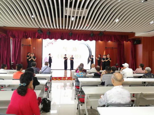 木蘭藝術團隊為大家表演了健美氣功《中國脊梁》,其外柔內剛的氣功表演給老壽星們帶來了美好的視聽享受。氣功老師還現(xiàn)場教壽星們學習了三節(jié)簡易的健身氣功:搓手、夾耳、繞舌,能讓老人們在日常生活中隨時隨地都可以練習,達到健身的目的。
