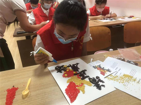 活動(dòng)中,青少年們首先誦讀與廉潔有關(guān)的詩(shī)詞,在品味《墨竹圖題詩(shī)》中認(rèn)識(shí)清廉,又在《南風(fēng)歌》中了解清廉。老師們通過(guò)傳統(tǒng)文化教育,對(duì)青少年們進(jìn)行“反腐敗,倡廉潔”的教育宣傳,引導(dǎo)他們從小樹(shù)立正確的價(jià)值觀。在繪畫(huà)制作環(huán)節(jié),大家用五谷雜糧繪制出“清正廉潔”的精美作品。在老師帶領(lǐng)下,孩子們一邊涂膠,一邊把彩色雜糧鋪撒在底板上,經(jīng)過(guò)細(xì)心的操作,一幅幅精美的清廉作品就制作完成了。畫(huà)上有華表、五星紅旗圖案,還有“清正廉潔”四個(gè)字。老師幫助大家把畫(huà)框裱在相框里,孩子們都開(kāi)心極了。老師又給孩子們發(fā)放了剪紙,上面有蓮花和“廉”字。
