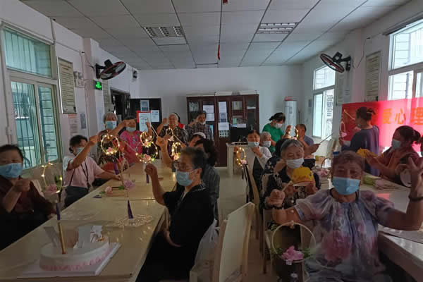 活動(dòng)首先以“有獎(jiǎng)競(jìng)猜”互動(dòng)游戲的形式開展,問答內(nèi)容包括重陽節(jié)傳統(tǒng)文化、健康生活知識(shí)、反詐宣傳等。隨后,在工作人員的幫助下,大家又動(dòng)手制作了非常漂亮的兔子燈籠。社區(qū)志愿者、木蘭花居家養(yǎng)老中心工作人員為老人們準(zhǔn)備了生日蛋糕,給壽星們戴上了生日帽,和壽星們一起吹蠟燭,切生日蛋糕、齊唱生日歌。老人們開心地吹滅蠟燭,并許下了美好的心愿。