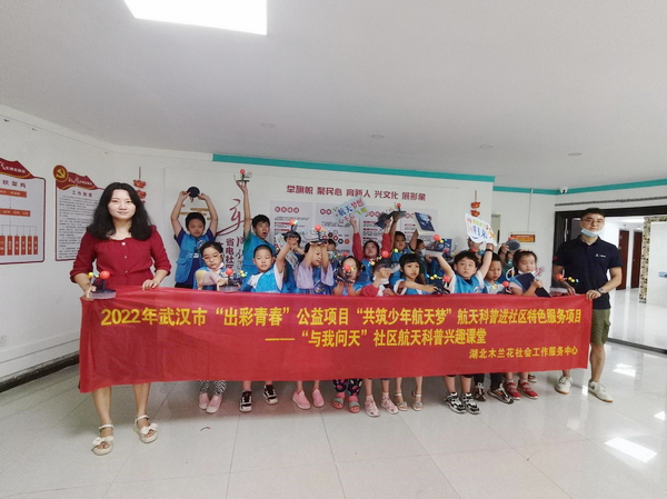 航天科普工作是社會(huì)系統(tǒng)工作,是社會(huì)公益性事業(yè)。它能提高國民科技素質(zhì),增強(qiáng)公眾對(duì)我國航天事業(yè)進(jìn)程的了解及支持,激發(fā)自信、愛國等信念,以大幅提高全民的整體素質(zhì),帶動(dòng)精神生活水準(zhǔn),共青團(tuán)中央在青少年航天科普工作中起著主導(dǎo)作用。近期,2022年武漢市“出彩青春”公益項(xiàng)目中由湖北木蘭花社會(huì)工作服務(wù)中心開展的“共筑少年航天夢”航天科普進(jìn)社區(qū)特色服務(wù)項(xiàng)目已在6個(gè)社區(qū)進(jìn)行了17場線下活動(dòng),建立了3個(gè)航天興趣社群。