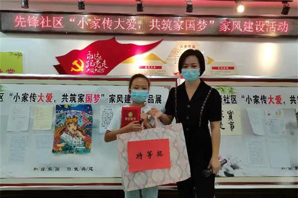 本次家風(fēng)建設(shè)評(píng)選活動(dòng),先鋒社區(qū)工作人員從8月中旬就在轄區(qū)內(nèi)發(fā)放《家風(fēng)建設(shè)倡議書》,進(jìn)行宣傳,并通過3場精彩的社區(qū)活動(dòng),征集作品30余件。社區(qū)會(huì)將家風(fēng)建設(shè)獲獎(jiǎng)作品,在小區(qū)庭院里展覽,讓更多轄區(qū)居民行動(dòng)起來,帶頭正品行、立家規(guī)、嚴(yán)家教、樹家風(fēng),做家風(fēng)建設(shè)表率。