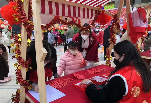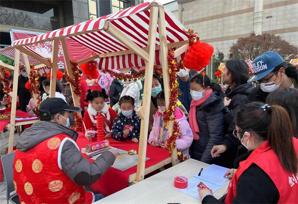 活動(dòng)現(xiàn)場(chǎng),寫春聯(lián)、剪窗花、納福紙鳶、糖畫、糖葫蘆、古風(fēng)漢服、趣味棉花糖、套圈等攤位前吸引了越來(lái)越多的居民前來(lái)參與。大家自主選擇想要體驗(yàn)的項(xiàng)目,歡聲笑語(yǔ)不斷。