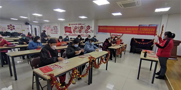 掛起燈籠、貼上福字,用傳統(tǒng)習(xí)俗為居民營(yíng)造濃濃的年味。近日,武漢市武昌區(qū)水果湖街道機(jī)安社區(qū)聯(lián)合湖北木蘭花社會(huì)工作服務(wù)中心,利用惠民資金開展“社區(qū)共建話民俗,多彩生活促和諧”節(jié)日民俗文化活動(dòng),讓居民在歡樂、祥和的氛圍中歡度新春,共迎即將到來的元宵佳節(jié)。