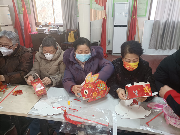 此次活動(dòng)線上線下共計(jì)邀請(qǐng)到50多位居民代表參加?;顒?dòng)現(xiàn)場(chǎng)為居民準(zhǔn)備了手工DIY兔年主題燈籠、有趣的猜燈謎、吃湯圓等活動(dòng)環(huán)節(jié),現(xiàn)場(chǎng)氣氛其樂(lè)融融,一派祥和。不得不說(shuō)居民都非常厲害,稍加提醒便立馬悟出謎底,然后興奮來(lái)到工作人員身邊領(lǐng)取燈籠DIY材料包,不一會(huì)兒一個(gè)個(gè)精巧可愛(ài)的兔子燈籠便制作完成。手巧的金阿姨拎著自己動(dòng)手完成的兔子燈籠開(kāi)心的合不攏嘴:“看我厲害吧,一下就做好了,帶回去給我的小外孫玩,她一定很喜歡?!薄案兄x社區(qū)的精心安排,以后的活動(dòng)我都要積極參加?!?/p>