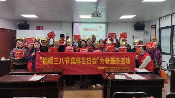 三八婦女節(jié)來(lái)臨之際,為進(jìn)一步活躍老年人的精神文化生活,豐富社區(qū)老人的晚年娛樂(lè)生活,3月7日,武漢市武昌區(qū)楊園街道柴東社區(qū)居委會(huì)聯(lián)合湖北省木蘭花社會(huì)工作服務(wù)中心,舉辦“情暖三八節(jié),集體生日會(huì)”為老愛(ài)心服務(wù)活動(dòng)。