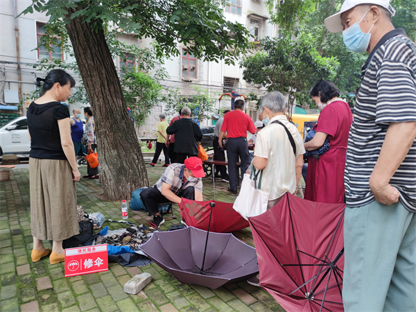 來到活動現(xiàn)場來磨刀、修傘、修鞋的居民絡(luò)繹不絕,紛紛對社區(qū)的便民服務(wù)豎起大拇指點(diǎn)贊,她們都說平時想花錢修都找不到師傅,社區(qū)的便民服務(wù)太人性化太好了,把我們需要的人都請到家門口來了,非常感謝社區(qū)。