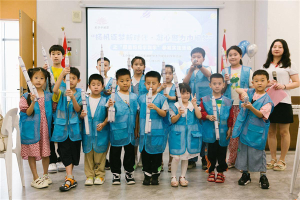 隨后,媽媽與孩子們來到航天科普課堂。一踏入航天科普活動(dòng)室,孩子們驚呼出來“這像是進(jìn)入太空一樣”“媽媽,我要跟同學(xué)說我今天進(jìn)入太空了”。嫦娥奔月航天科技(武漢)有限公司科普老師熊彥為孩子們?cè)敿?xì)講解航天科普知識(shí),緊接著,工作人員發(fā)放了火箭模型制作材料,媽媽與孩子們共同動(dòng)手制作,組裝完成了航天模型。大家拿著自己精心制作的航天模型,內(nèi)心充滿了自豪感與成就感。互動(dòng)中,熊彥讓大家拿起手邊的模型和星星燈,說:“愿孩子們永葆心里的那份童真,保留著自己對(duì)宇宙星辰的好奇,終有一天,你們會(huì)在自己的領(lǐng)域一飛沖天?!?br/>