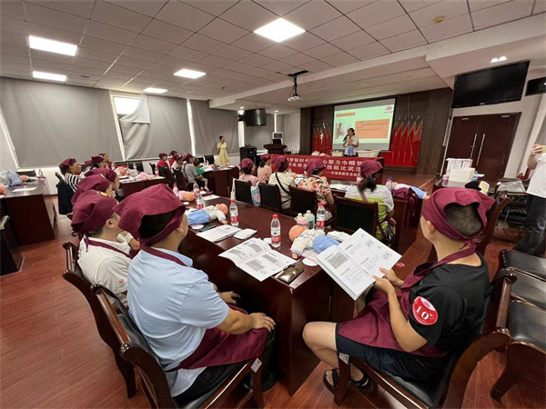 隨后,活動(dòng)現(xiàn)場(chǎng)展開(kāi)了“育嬰”實(shí)操比武,居民們展開(kāi)激烈比拼,現(xiàn)場(chǎng)氣氛熱烈。大家熱情高漲,紛紛分享自己的育兒心得體會(huì)。活動(dòng)特別設(shè)置了“超級(jí)奶爸大比拼”環(huán)節(jié),新手爸爸齊上陣,曬出“十八般武藝”,精準(zhǔn)完成各項(xiàng)育嬰動(dòng)作?!敖裉靵?lái)參加活動(dòng),主要是想學(xué)一些育嬰知識(shí),養(yǎng)育孩子不光是媽媽一個(gè)人的事情,爸爸參與對(duì)孩子的健康成長(zhǎng)會(huì)很有幫助?!币幻澳贪帧闭f(shuō)。
