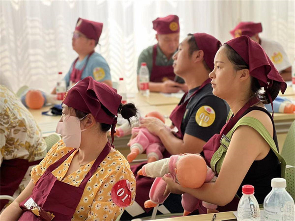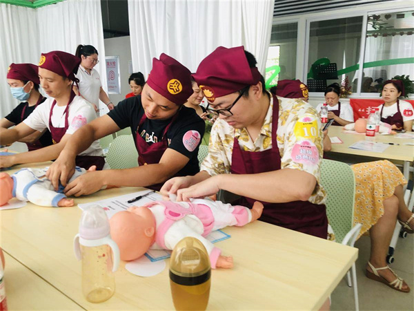 “奶粉沖好之后可能沒(méi)有完全溶解,此時(shí)切記不要去拼命晃奶瓶,可以放在手心轉(zhuǎn)動(dòng)讓奶粉慢慢溶解……”國(guó)家高級(jí)育嬰講師劉麗說(shuō)。兩個(gè)小時(shí)的課程,老師從育嬰技能、家政收納等方面對(duì)居民展開(kāi)基礎(chǔ)理論知識(shí)培訓(xùn)?!拔覀兗磳⒁有律?,但是我們根本不知道要怎么護(hù)理小孩,今天來(lái)參加活動(dòng),我們有了基礎(chǔ)經(jīng)驗(yàn),到時(shí)候?qū)殞毘錾缶筒粫?huì)手足無(wú)措了?!币粚?duì)新手爸媽說(shuō)。