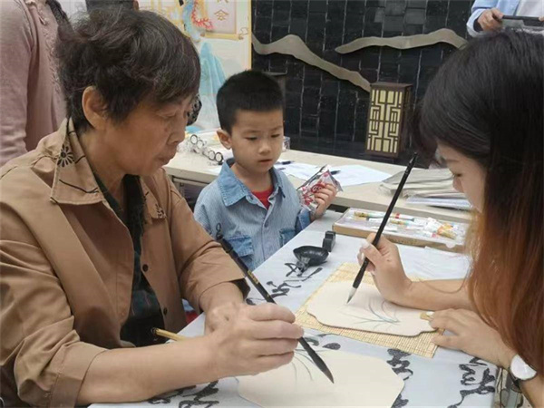 活動(dòng)現(xiàn)場(chǎng),充滿中秋特色的主題背景讓人眼前一亮,在書法老師帶領(lǐng)下,社區(qū)內(nèi)愛(ài)好書法的志愿者們奮筆疾書,在軸卷上寫下“好棲心見(jiàn)素家風(fēng),洞中別是仙鄉(xiāng)”“玄晏家風(fēng)黃綺身,深居高臥養(yǎng)精神”等家風(fēng)家訓(xùn)的優(yōu)美詩(shī)句。清廉團(tuán)扇《蘭》的活動(dòng)現(xiàn)場(chǎng),大批居民用不太嫻熟的手法,在老師帶領(lǐng)下,用水墨在團(tuán)扇上繪制出一株株形態(tài)優(yōu)美的蘭花?!版鼓然ㄗ吮倘~長(zhǎng),風(fēng)來(lái)難隱谷中香?!币皇住对佊奶m》,道出了“蘭花”冰清玉潔的高雅氣質(zhì),也道出了它素淡、雅致、潔凈的風(fēng)格,推崇忠貞、廉潔、質(zhì)樸、堅(jiān)韌的情操。