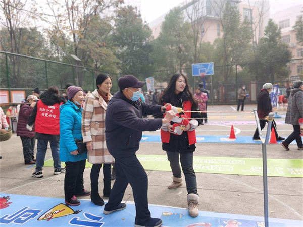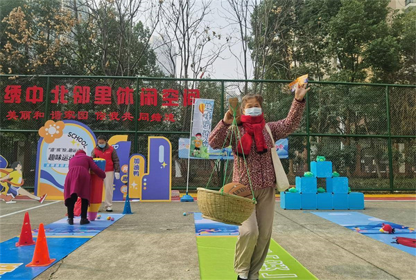 工作人員剛布置場地,就有許多居民和孩子好奇地聚攏,了解比賽項目、活動流程等,一個個躍躍欲試。當(dāng)憤怒的小鳥、趣味投沙包、歡樂保齡球、愛的粘粘樂、協(xié)力心連心、巧運(yùn)籃球等6個項目整齊擺開后,居民們拿著“闖關(guān)卡”,開心地體驗起來。工作人員認(rèn)真地向大家介紹游戲規(guī)則,并為率先集齊6個印章的居民兌換獎品,整場活動井然有序,參與者非常開心。
