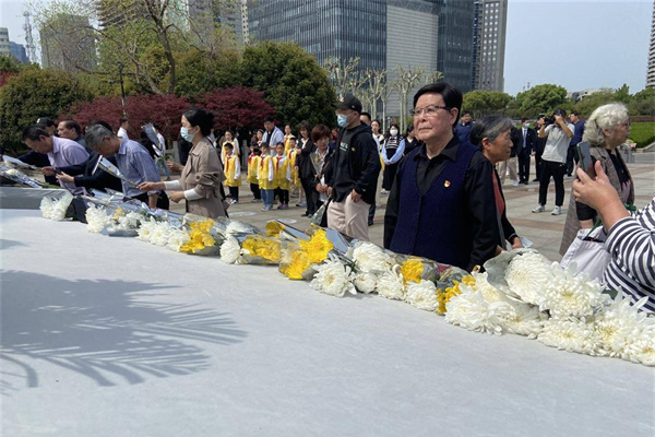 隨后,姚家?guī)X社區(qū)黨委書記袁學(xué)剛與專職副書記余珊帶領(lǐng)全體黨員和少先隊(duì)員在董必武紀(jì)念像前有序分批獻(xiàn)上花籃和鮮花。