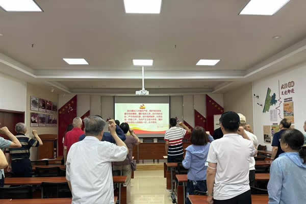 當(dāng)天,社區(qū)退役軍人活動(dòng)室內(nèi)熱鬧非凡,三十多位退役軍人及居民代表齊聚一堂。在社區(qū)黨委書記、退役軍人服務(wù)站站長何勃的帶領(lǐng)下,參加活動(dòng)的黨員面對(duì)黨旗高舉右拳,重溫入黨誓詞,集中觀看學(xué)習(xí)視頻。