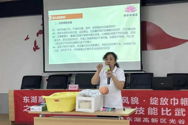 洗澡、換尿布、喂奶、抱孩子……這些最基本的帶娃技能你掌握了嗎?7月6日,武漢東湖高新區(qū)婦聯(lián)在九峰街道仁尚里社區(qū),開展“追逐時(shí)代風(fēng)貌·綻放巾幗風(fēng)采”之巧娘創(chuàng)業(yè)就業(yè)指導(dǎo)暨技能比武活動(dòng),滿足家庭對(duì)母嬰護(hù)理、嬰幼兒照護(hù)、收納整理的基本需求,同時(shí)為廣大婦女提供專業(yè)、精準(zhǔn)的就業(yè)方向指導(dǎo)。