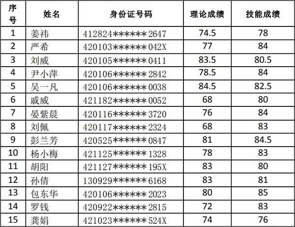 根據(jù)《省人力資源和社會保障廳關(guān)于印發(fā)〈湖北省職業(yè)技能等級認(rèn)定評價機構(gòu)監(jiān)督管理辦法(試行)〉、〈湖北省職業(yè)技能等級認(rèn)定工作實施細(xì)則(試行)》的通知〉》(鄂人社發(fā)〔2020〕45號)文件規(guī)定,現(xiàn)對2024年8月份養(yǎng)老護(hù)理員4級、5級職業(yè)技能等級認(rèn)定評價成績進(jìn)行公示。