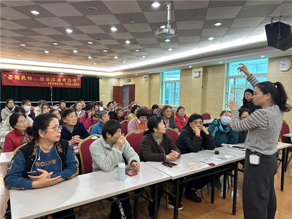 中國(guó)書(shū)法是中華文化的瑰寶,歷經(jīng)數(shù)千年演變,形成了篆、隸、楷、行、草五種書(shū)體。它不僅是文字的藝術(shù)表現(xiàn),更是書(shū)法家情感與個(gè)性的抒發(fā),承載著深厚的歷史文化底蘊(yùn),體現(xiàn)了中華民族的獨(dú)特審美情趣和哲學(xué)思想?;顒?dòng)開(kāi)始,老師先向社區(qū)居民普及中國(guó)書(shū)法的基本特點(diǎn)、歷史沿革及藝術(shù)價(jià)值,提高大眾對(duì)書(shū)法藝術(shù)的欣賞能力,并通過(guò)ppt展示部分書(shū)法作品。