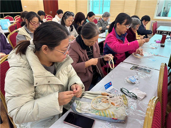 貝殼風(fēng)鈴?fù)ǔJ怯删x的天然貝殼手工制作而成,其制作技藝涉及貝殼的采集、挑選、加工、設(shè)計(jì)、組裝等多個(gè)環(huán)節(jié)。這些技藝往往體現(xiàn)了制作者對(duì)手工藝品美感的追求和對(duì)傳統(tǒng)文化的尊重。其制作技藝被認(rèn)定為非物質(zhì)文化遺產(chǎn)的一部分,書(shū)法貝殼風(fēng)鈴融入了非遺元素,為非遺文創(chuàng)的一種表現(xiàn)形式。社工將制作的貝殼、魚(yú)線(xiàn)、竹筐、棉線(xiàn)、玻璃蝴蝶、書(shū)法貼紙等材料分發(fā)給居民,在老師的指導(dǎo)下,大家開(kāi)始制作書(shū)法風(fēng)鈴?,F(xiàn)場(chǎng)的居民非常認(rèn)真的將棉線(xiàn)穿過(guò)竹筐打結(jié),再將玻璃蝴蝶和白色貝殼依次穿過(guò)魚(yú)線(xiàn),并有次序間隔的固定好,做成一串一串的。最后將所有穿好的貝殼固定在竹筐上,貼上書(shū)法貼紙,國(guó)潮貝殼風(fēng)鈴就做好了。探索書(shū)法與蝴蝶貝殼風(fēng)鈴這一傳統(tǒng)手工藝品結(jié)合的新方式,為非遺文化注入新鮮血液,吸引更多人關(guān)注和參與非遺保護(hù)。