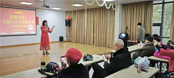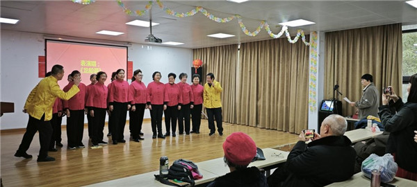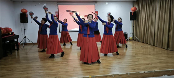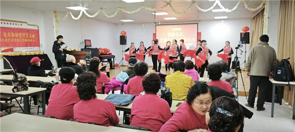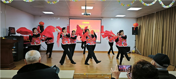 “山丹丹的那個(gè)開花呦,紅艷艷~~”隨著動(dòng)聽的音樂響起,略施粉黛,統(tǒng)一著裝的阿姨們陸續(xù)登場,隨著音樂揮舞著手里的折扇,在空中畫出優(yōu)美的弧線,臺(tái)下又響起陣陣掌聲。隨后,文娛團(tuán)隊(duì)又表演了女生獨(dú)唱《你是血脈我是血》、女聲混聲合唱《深深的海洋》、男生獨(dú)唱《娥嫚》、舞蹈《千古一醉》、表演唱《龍船調(diào)》、歌舞《精忠報(bào)國》等。臺(tái)上的文娛骨干熱情洋溢的舞蹈和歌聲使這個(gè)冬季顯得溫暖又溫情。臺(tái)下壽星欣賞著大家的表演,并給予掌聲的肯定。