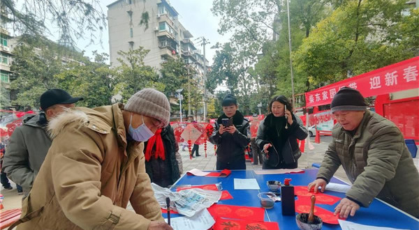 緊鄰著臘八粥發(fā)放點(diǎn)的是送春聯(lián)區(qū)域,六位書(shū)畫(huà)老師現(xiàn)場(chǎng)揮毫潑墨。筆鋒婉轉(zhuǎn)間,一副副對(duì)仗工整、寓意吉祥的春聯(lián)躍然紙上,句句飽含著對(duì)新年的美好祝愿。居民們圍在一旁,認(rèn)真挑選著自己心儀的春聯(lián)。在活動(dòng)的一角,社區(qū)還邀請(qǐng)了專(zhuān)業(yè)理發(fā)師為居民們提供免費(fèi)理發(fā)等一系列服務(wù)。歡聲笑語(yǔ)回蕩在廣場(chǎng)上空,寒冷的冬日也變得格外溫暖。