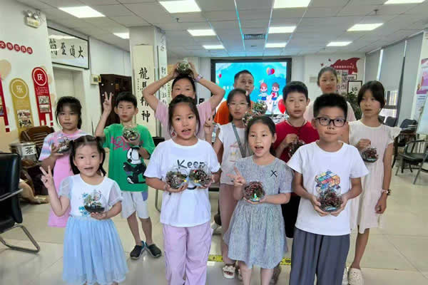 第二場活動是“生態(tài)環(huán)保微景觀制作”。結(jié)合社區(qū)綠化養(yǎng)護與生態(tài)治理需求,社工先向孩子們科普社區(qū)生態(tài)系統(tǒng)構(gòu)成、植物養(yǎng)護知識,以及微景觀對改善局部環(huán)境、提升社區(qū)美觀度的作用,隨后給大家分發(fā)玻璃容器、多肉植物、營養(yǎng)土、裝飾砂石等材料,指導大家根據(jù)植物生長特性,分層鋪設(shè)基質(zhì)、搭配植物、設(shè)計景觀,親手制作專屬生態(tài)微景觀?;顒又校蠹也粌H掌握了植物養(yǎng)護的科學方法,更通過微觀生態(tài)模型,理解了社區(qū)宏觀生態(tài)治理的“平衡理念”。