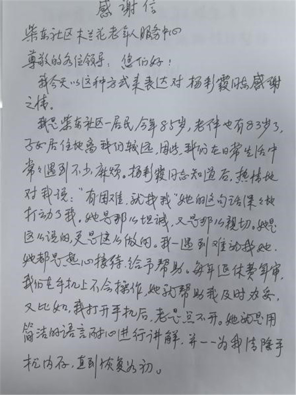 “小楊教我用微信視頻時(shí),連怎么調(diào)音量都一步步講,比我孩子還耐心!”85歲的丁樂(lè)先老人捧著感謝信,手指輕輕劃過(guò)信上的字跡。他的子女住的離老人比較遠(yuǎn),老伴也有83歲了,兩位老人之前連智能手機(jī)接電話都費(fèi)勁,更別提退休年審、用微信和子女視頻了。小楊知道后,專門抽時(shí)間教他:先把每個(gè)功能鍵的用途寫在紙條上貼在手機(jī)背面,再手把手教他怎么點(diǎn)進(jìn)年審頁(yè)面、怎么發(fā)語(yǔ)音;遇到老人記不住的步驟,就反復(fù)演示,直到他能獨(dú)立操作。“現(xiàn)在我每天都能和孫子視頻,年審也不用麻煩孩子回來(lái),心里踏實(shí)多了!”老人說(shuō)著,臉上露出了滿足的笑容。