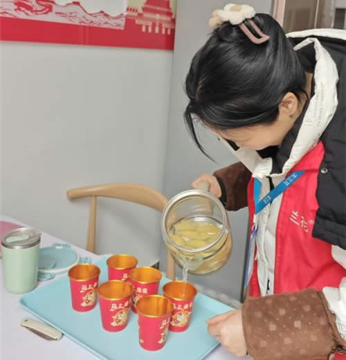 考慮到降雪后老人易受涼,中心特意為前來取暖、休息的老人們煮制了驅(qū)寒暖心的蘋果暖身水。工作人員精心挑選新鮮蘋果,搭配紅棗、枸杞慢火熬煮,將溫?zé)嵯闾鸬呐硭职l(fā)到每位老人手中。捧著熱氣騰騰的水杯,老人們臉上滿是笑意,紛紛夸贊中心服務(wù)周到貼心。